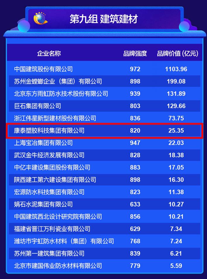 5月10日,中國品牌建設(shè)促進(jìn)會發(fā)布了“2020年中國品牌價(jià)值榜單”??堤┧苣z品牌價(jià)值達(dá)到25.35億元,升幅88%,再創(chuàng)新高,有力彰顯了“康泰”品牌的強(qiáng)度、知名度、美譽(yù)度。