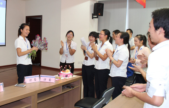 演講比賽結(jié)束后,9月員工生日會隆重舉行。很多9月生日的員工因為工作原因未能達(dá)到現(xiàn)場,隨著“祝你生日快樂”熟悉的旋律響起,一段9月生日員工的PPT向大家展示了9月壽星們在工作崗位上的精神風(fēng)貌,而來自采供中心的何瑤代表他們接受了大家的鮮花與祝福。
